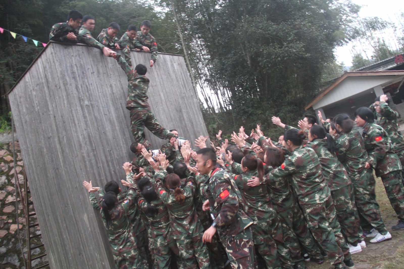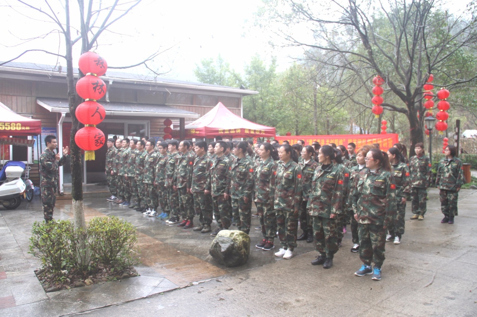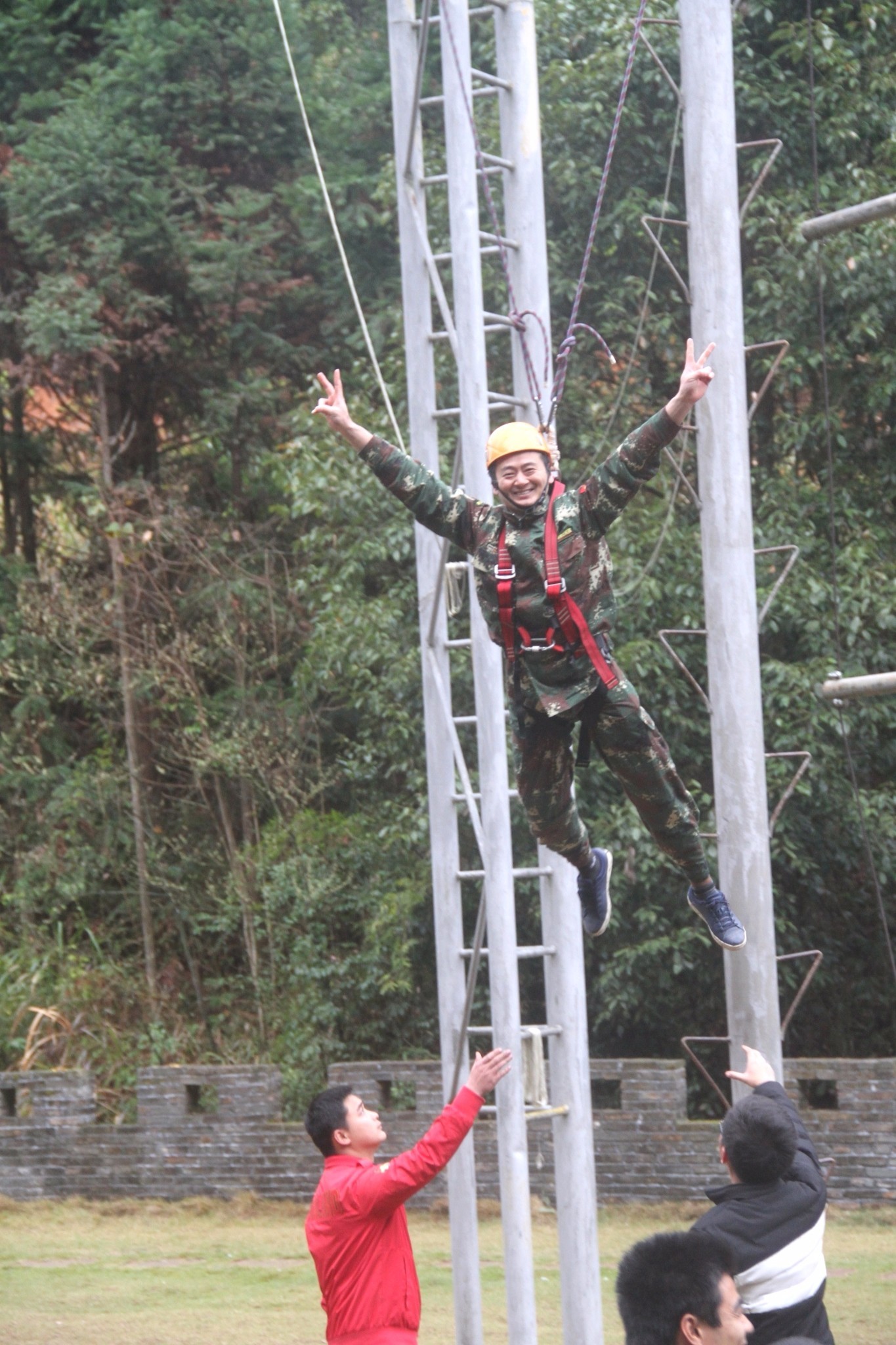 第一天团队统一着装迷彩服,进行团队组建并建立统一的团队目标。参加心情扑克牌、高空抓杆、盗梦空间、七巧板等项目。