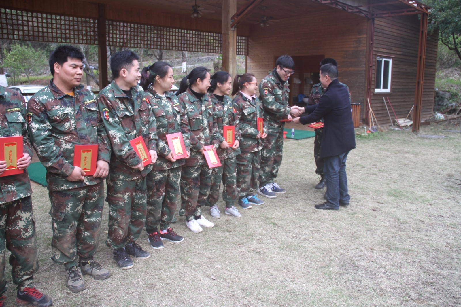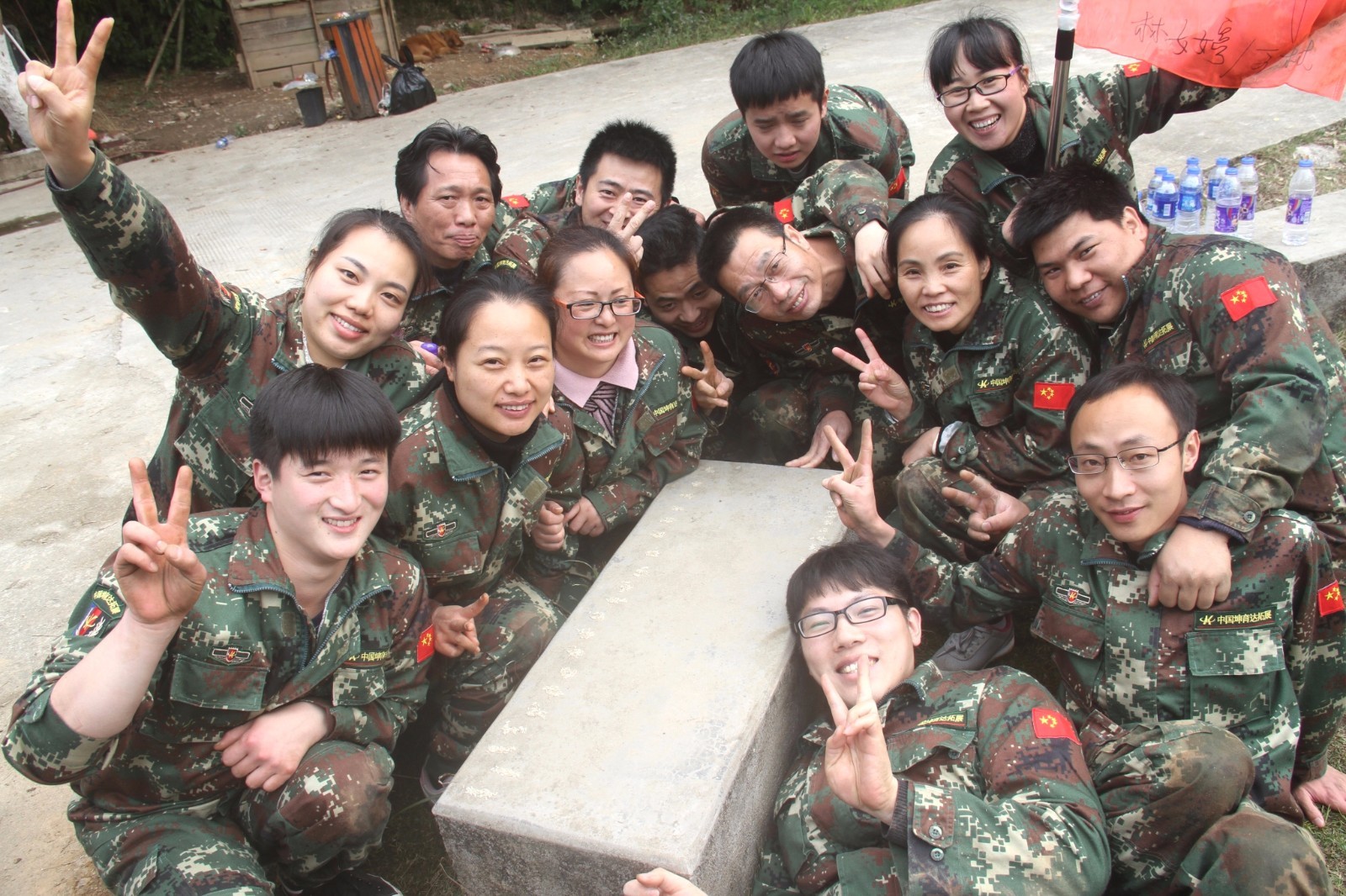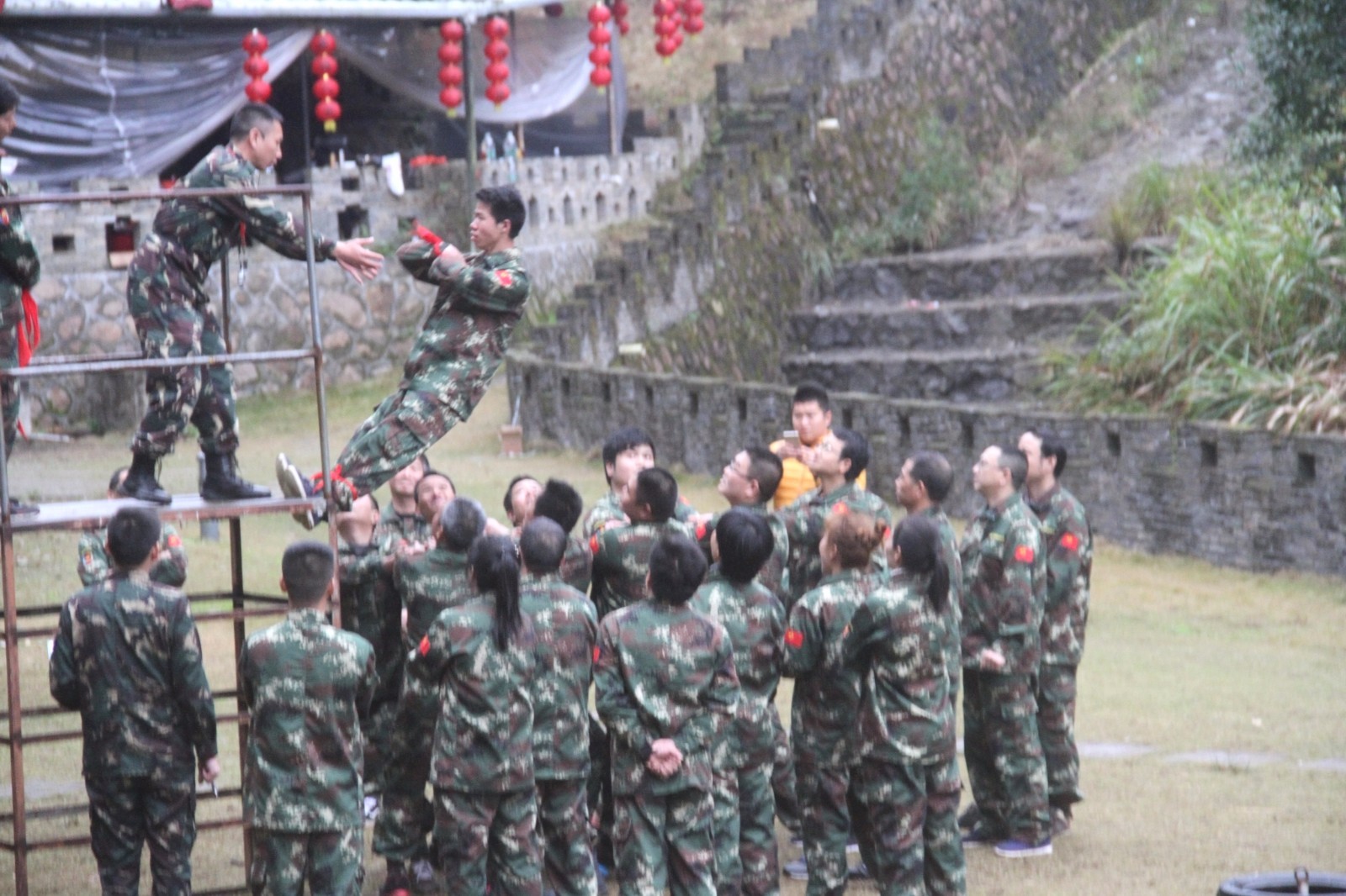 第一天团队统一着装迷彩服,进行团队组建并建立统一的团队目标。参加心情扑克牌、高空抓杆、盗梦空间、七巧板等项目。