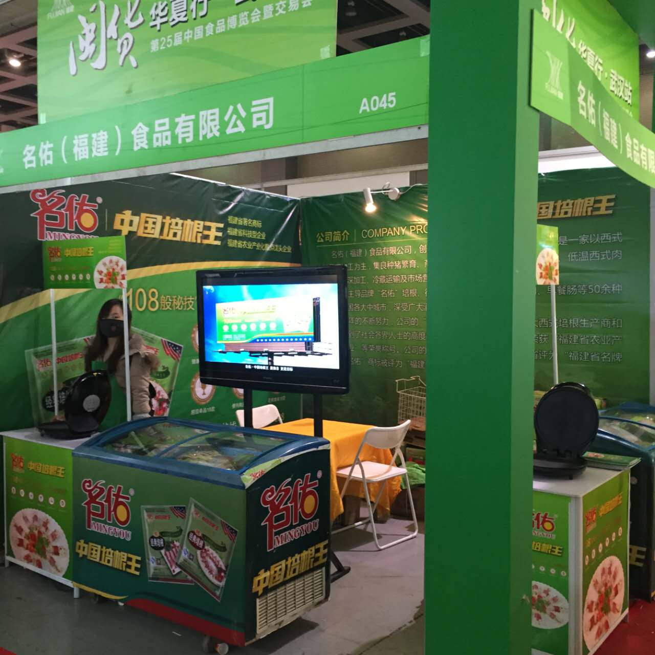 我公司做为最大的培根生产商,此次组团以“闽货华夏行•武汉站”活动形式参加武汉站食品博览。我公司在福建展团展A045区,通过整体统一布展、企业形象展示、品牌商品展销等形式提升名佑产品在国内市场的认知度和影响力,寻求合作机遇,扩大省外销售市场。